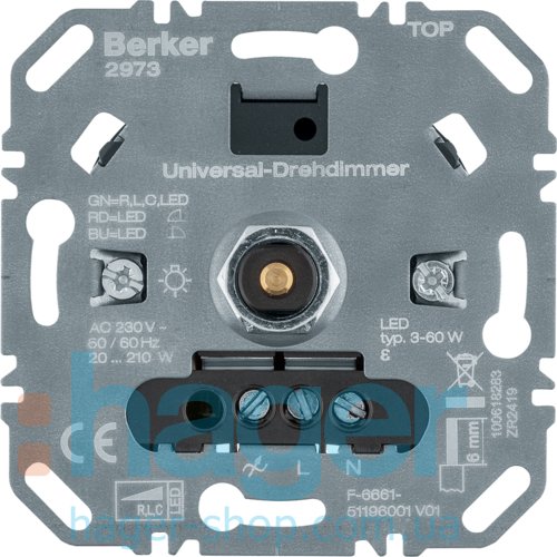 Диммер поворотный, универсальный 20-210Вт, LED 3-60Вт, 230В Berker 2973