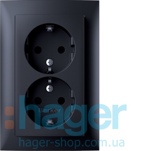 Розетка с з/к 2X, защита контактов, цельная, антрацит 16А/250В S.1 Berker 47591606