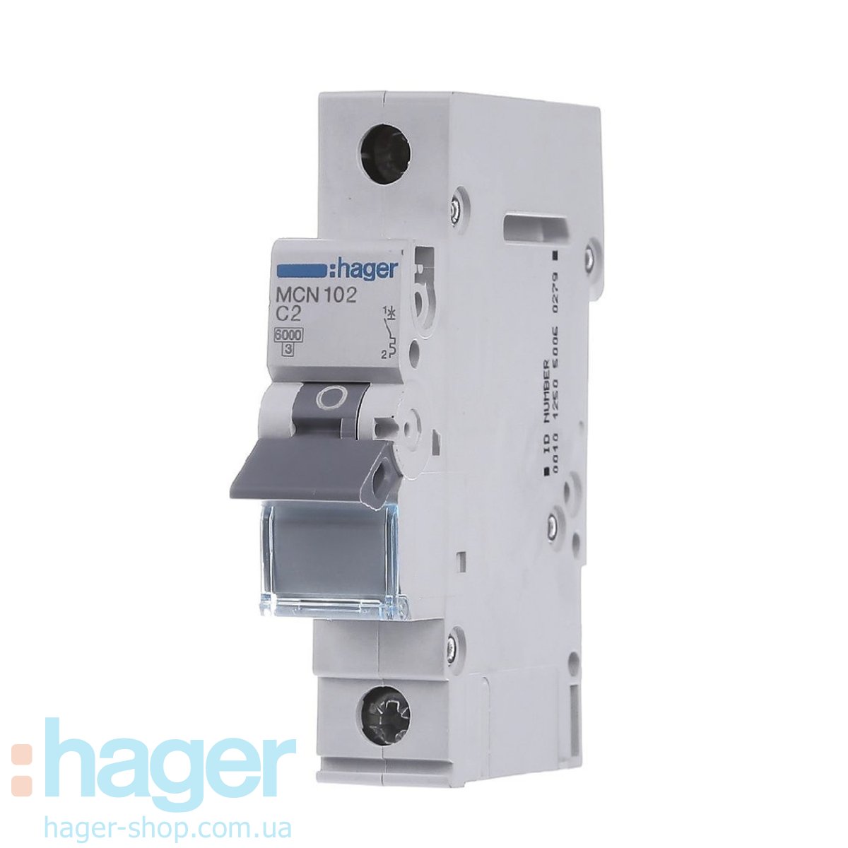 - Автоматический выключатель 1P, In=2A, «C», 6kA, 1м., MCN102