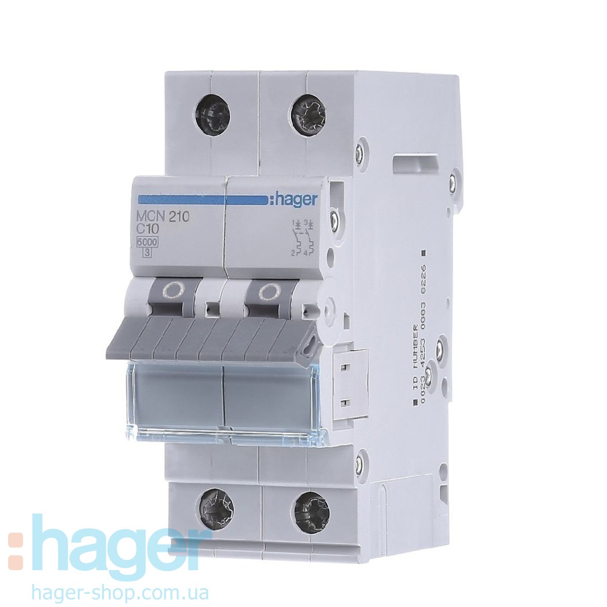 - Автоматический выключатель 2P, In=10A, «C», 6kA, 2м., MCN210