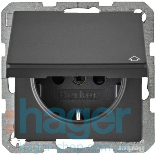 Розетка с з/к, крышка, зах.контактов, 16А/250В, антрацит, Q.х
