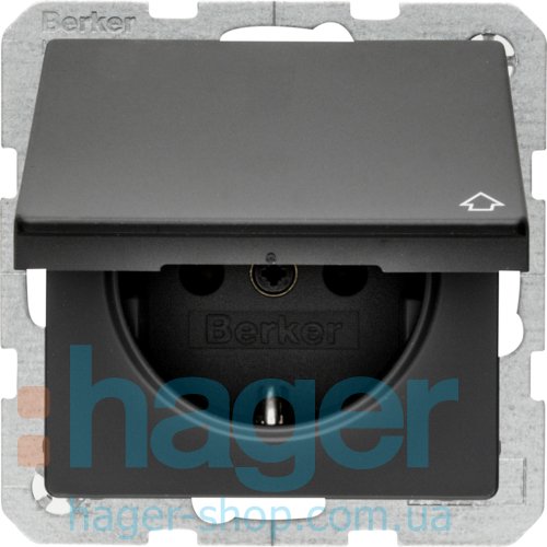 Розетка с з/к с крышкой, 16А/250В, антрацит, Q.х