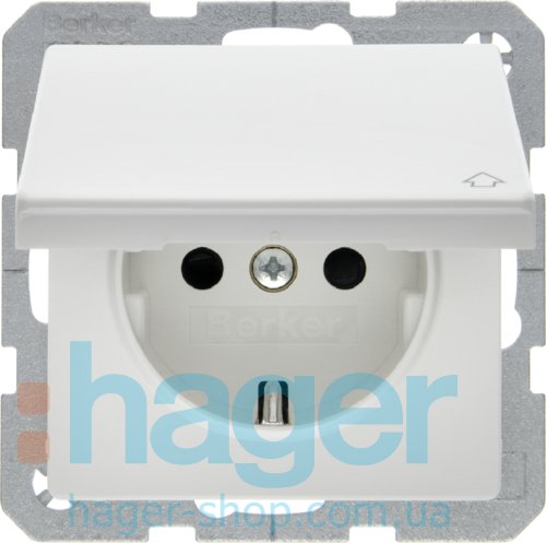 Розетка с з/к с крышкой, 16А/250В, пол.белизна, Q.х
