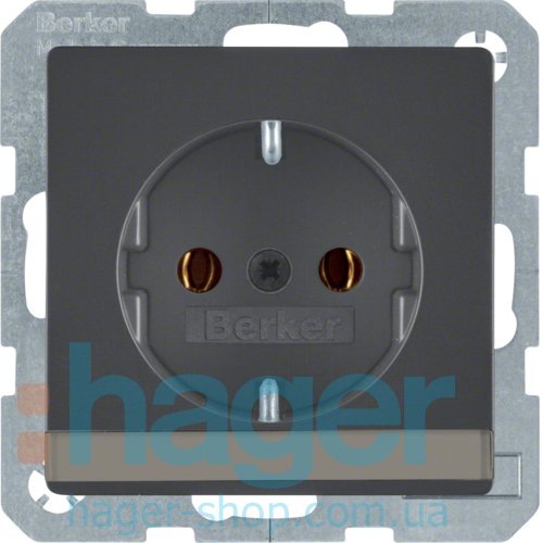 Розетка с з/к с полем для надписи, 16А/250В, антрацит, Q.х