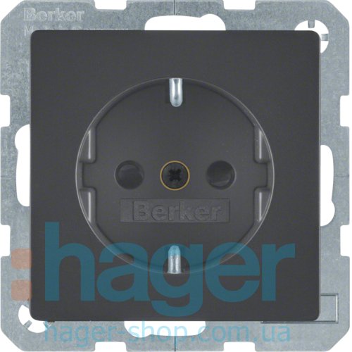Розетка с з/к, зах.контактов, 16А/250В, антрацит, Q.х