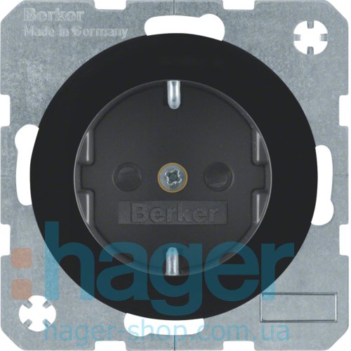 Розетка с з/к, зах.контактов, 16А/250В, черная, R.1/R.3