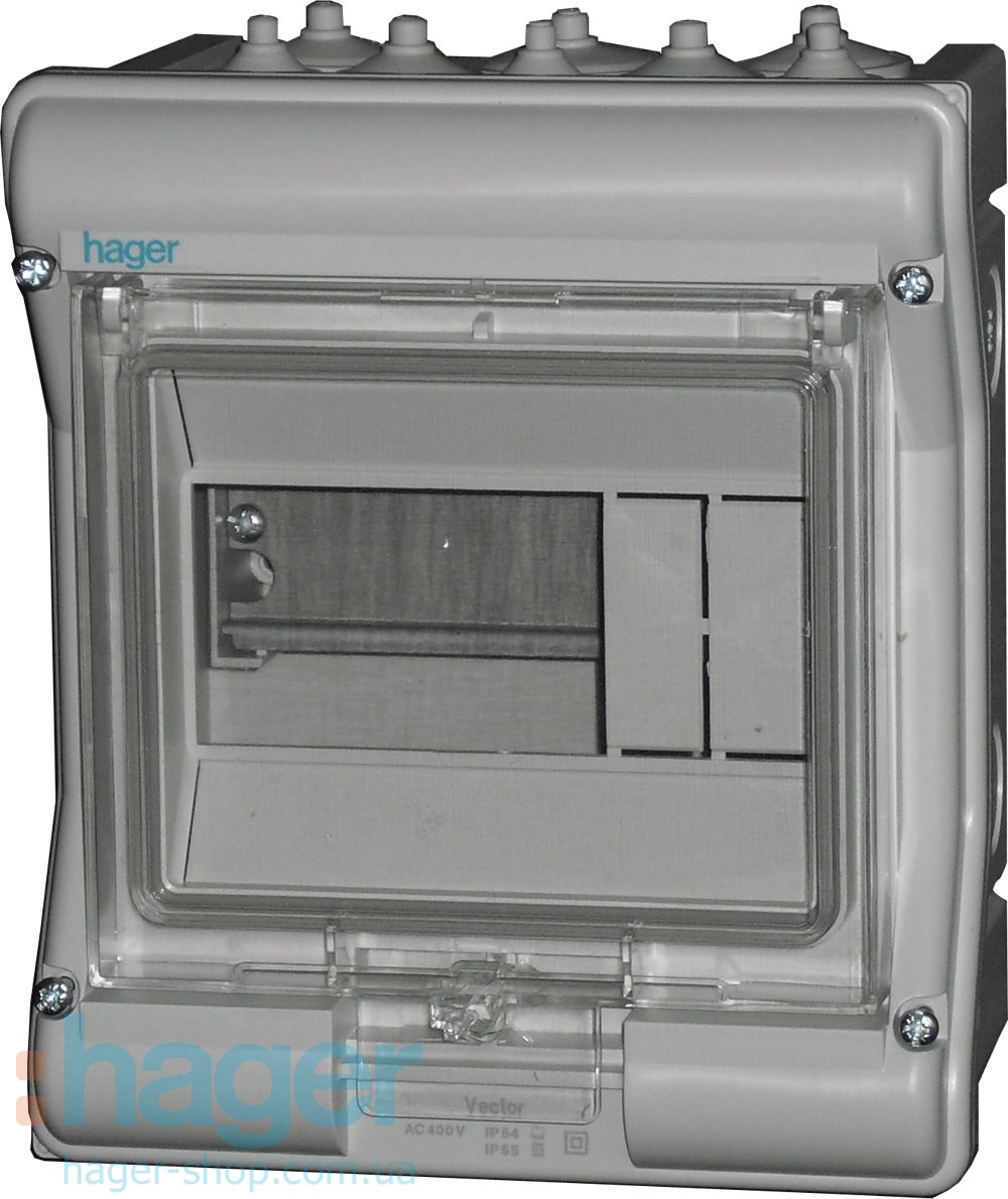 Щит распределительный на 6 модулей, накладной с прозрачными дверями, IP65, VECTOR VE106D