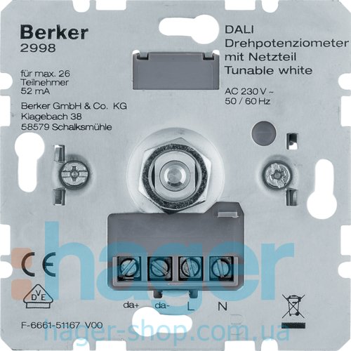 DALI-потенціометр з регулюванням білого, з блоком живлення, Soft-блокування Berker 2998