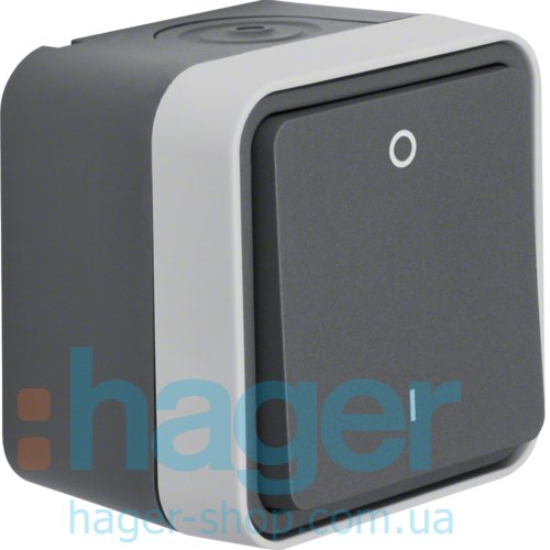 Вимикач 2-полюсний 0-І, IP55, сірий, 10АX/250В W.1 Berker 30723505