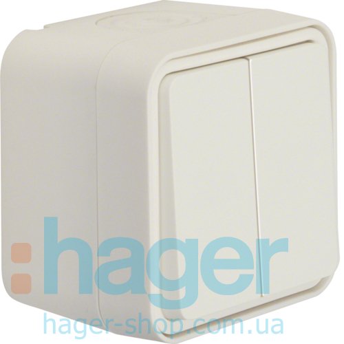 Вимикач 2-клавішний IP55, пол.білий, 10АX/250В W.1 Berker 30753502