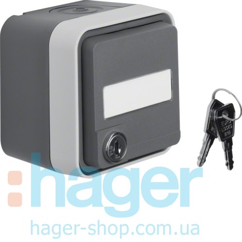Розетка з з/к, поле д/надпису, замок, IP55, сіра, 16А/250В W.1 Berker 47393505