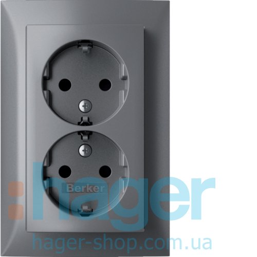 Розетка з з/к 2X, зах.контактів, цільна, алюміній 16А/250В S.1 Berker 47591404