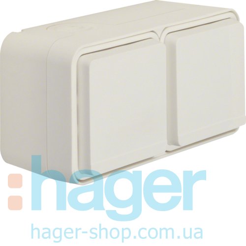 Розетка з з/к подвійна горизонтальна IP55, пол.біла, 16А/250В W.1 Berker 47843512