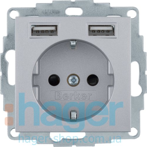 Розетка з з/к 16А/250В + 2хUSB A-A /2.4A, алюміній S.1 Berker 48031404