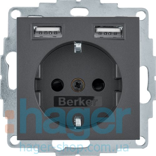 Розетка з з/к 16А/250В + 2хUSB A-A /2.4A, антрацит S.1 Berker 48031606