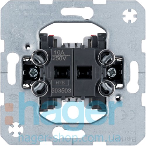 Кнопка 2-клавішна 2НВ (механізм), роздільні вхідні клеми, 10А/250В