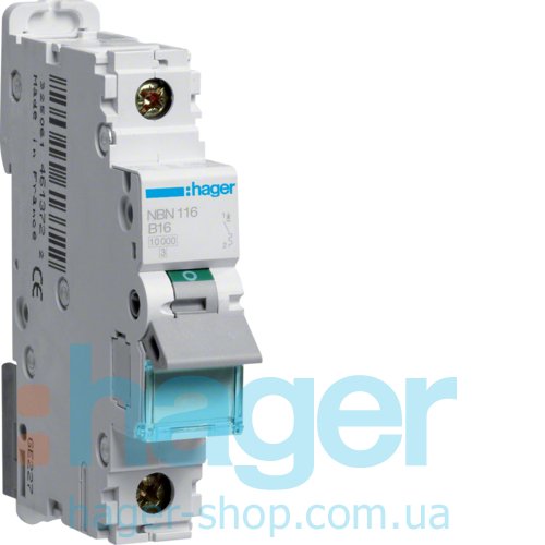 Автоматичний вимикач 1P 10kA B-16A 1M Hager NBN116
