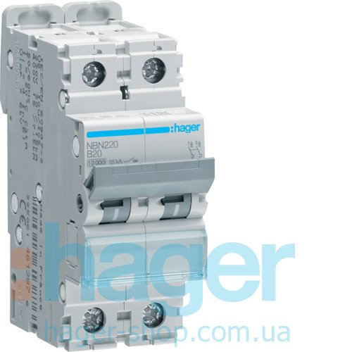 Автоматичний вимикач 2P 10kA B-20A 2M Hager NBN220