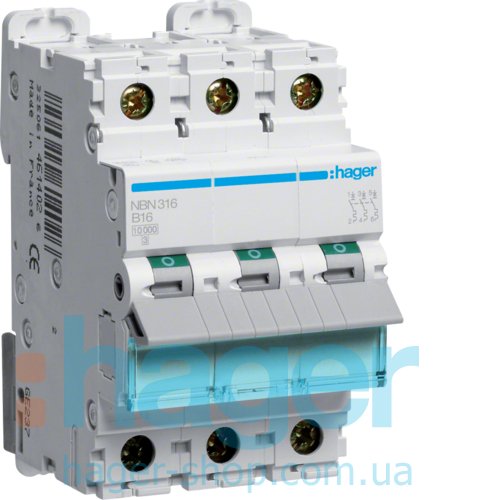Автоматичний вимикач 3P 10kA B-16A 3M Hager NBN316