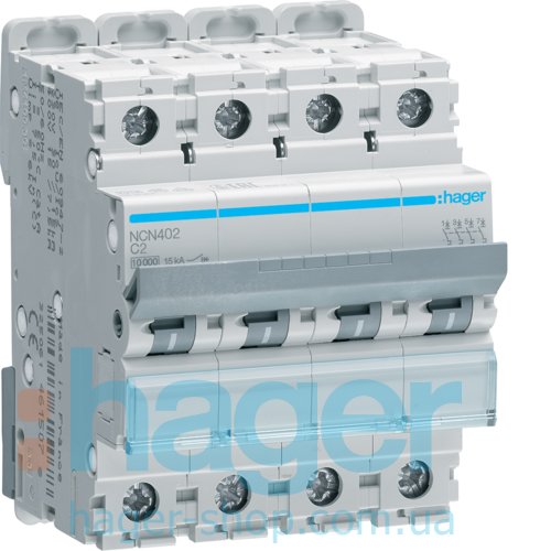 Автоматичний вимикач 4P 10kA C-2A 4M Hager NCN402