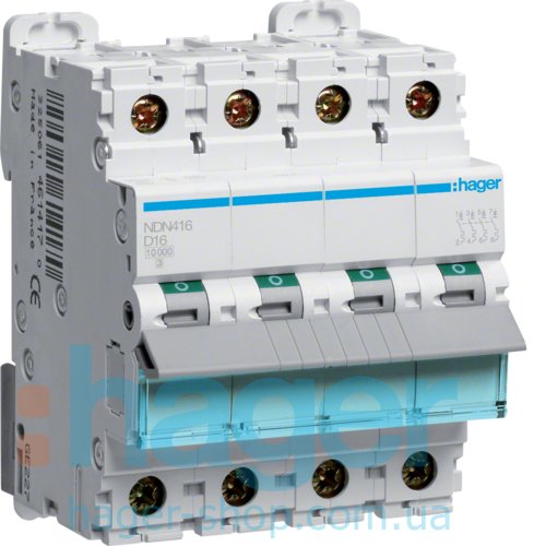 Автоматичний вимикач 4P 10kA D-16A 4M Hager NDN416
