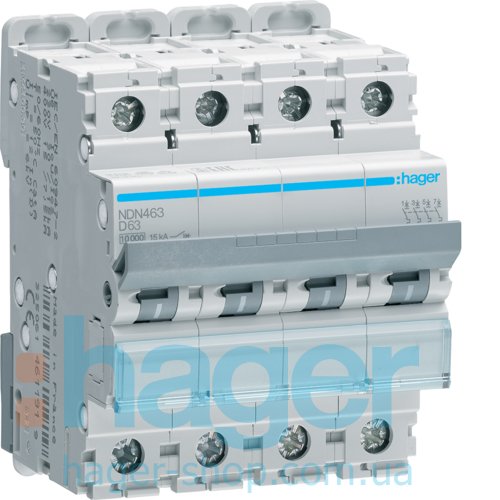 Автоматичний вимикач 4P 10kA D-63A 4M Hager NDN463