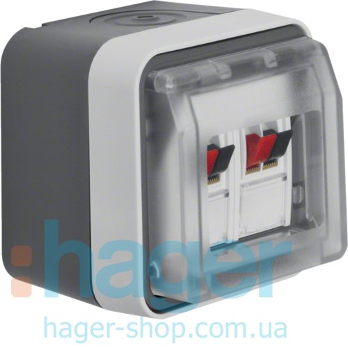 Розетка для гучномовця подвійна, IP55, сіра, W.1