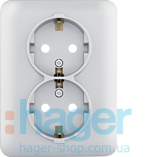 Розетка з з/к подвійна з захистом контактів Lumina, срібна, 16А/230В