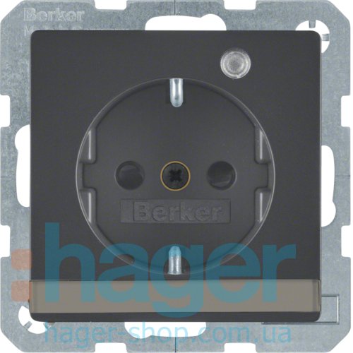 Розетка з з/к з контр.лампою, 16А/250В, антрацит, Q.х