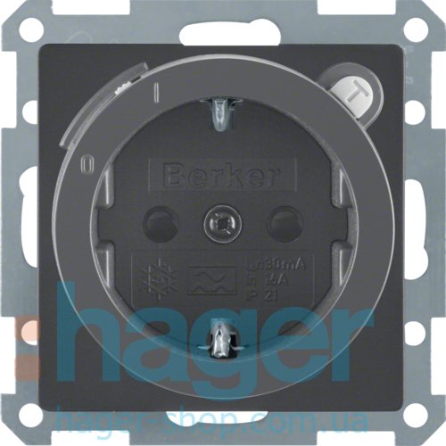 Розетка з з/к з ПЗВ з зах.контактів, 16А/250В, антрацит, Q.х