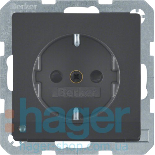 Розетка з з/к з зах.від дітей з LED-підсвіткою, 16А/250В, антрацит, Q.х