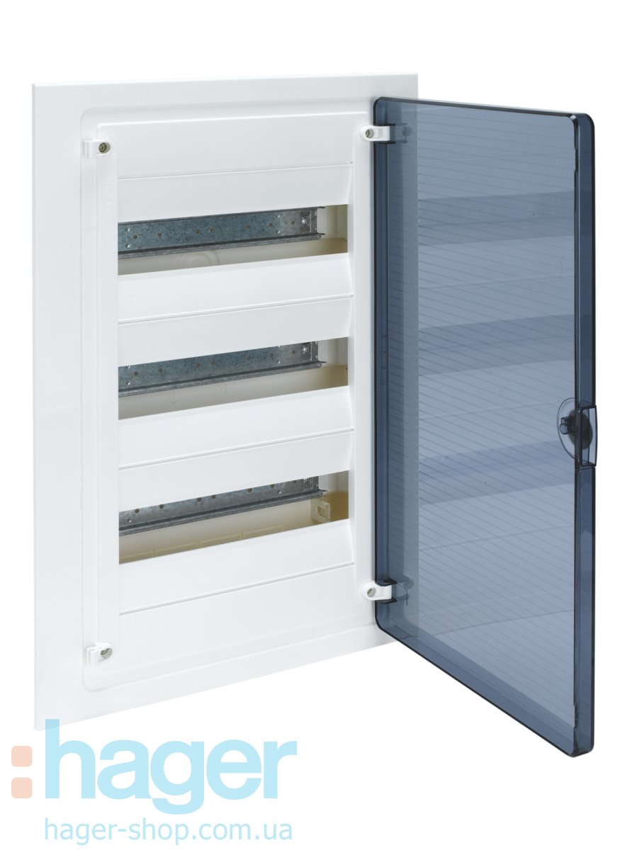 Распределительный щиток Хагер Гольф скрытой установки с белой дверцей, для устройств глубиной до 70 мм.