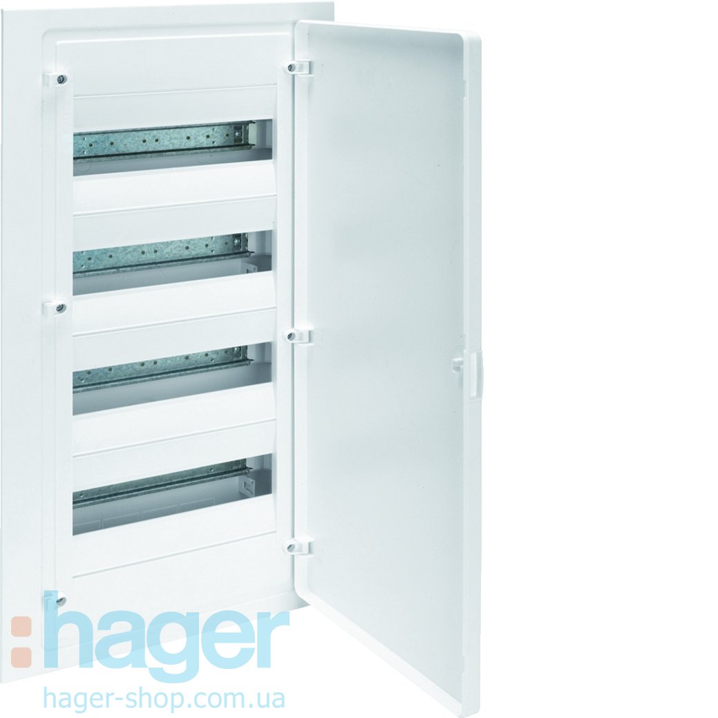 Распределительный щиток Хагер Гольф скрытой установки с белой дверцей, для устройств глубиной до 70 мм.