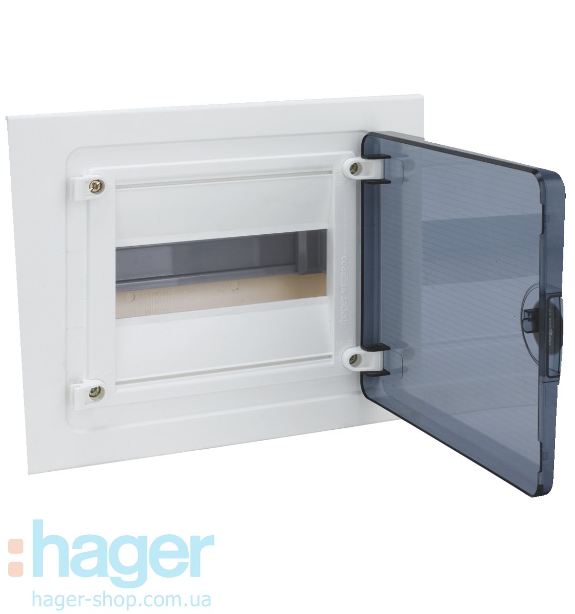 Распределительный щиток Хагер Гольф скрытой установки с белой дверцей, для устройств глубиной до 70 мм.