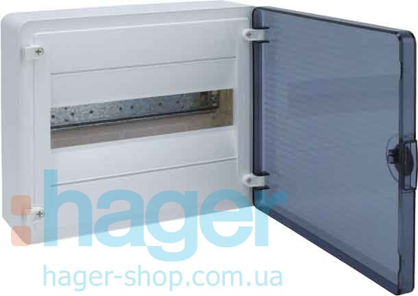 Распределительный щиток Хагер Гольф внешней установки с белой дверцей, для устройств глубиной до 70 мм.